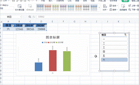 这时候图表所有项目的数据都在一起,如果想更清晰明确的动态图表,则只需要在【插入】选项中选择【切片器】,然后勾选【项目】,可适当调整图表位置和大小,这时候点击任何一个项目数据和图表就都一目了然啦!