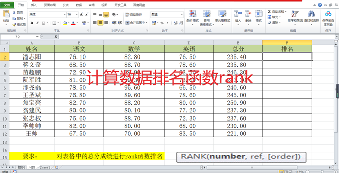 如图一所示,我们需要对这样的一个学生成绩表格,他们的一个总分成绩进行一个排名,根据它的一个要求去进行一个演示操作,那接下来多多就通过这个案例给各位,来用Excel函数rank,来给大家求值一波!