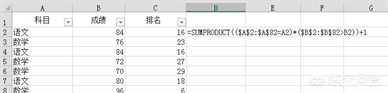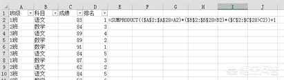 上图公式中,条件1【$A$2:$A$82=A2】是分科目排序,也就是语文排语文的,数学排数学的。