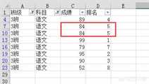 需要说明的是,这里进行的排序,采用同样的成绩并列的形式,具体如下图所示:
