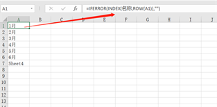 第二步:在单元格中输入公式=IFERROR(INDEX(名称,ROW(A1)),””),想下填充即可获取结果。
