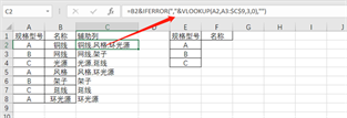 随后,输入公式=B2&IFERROR(“,”&VLOOKUP(A2,A3:$C$9,3,0),””),向下填充。