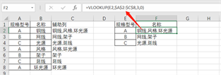 然后再用VL函数来完成最后的查找引用,输入公式=VLOOKUP(E2,$A$2:$C$8,3,0)