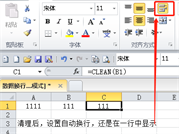 如下图所示,B1单元格内用了强制换行符,但是在单元格格式未设置成自动换行,所以显示出来还是111,但是实际上它现在不是数值、不能参与计算、还会影响查找引用。这种情况下该如何清除它呢?