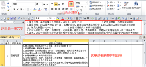 在Excel中,最常用的是自动换行,他的位置和实现的效果,直接看下图: