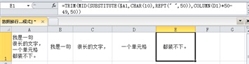 既然强制换行符是一个占一个字节的符号,那么我们可以就利用这个符号,来定位字符串内容,以实现对文本的截取操作【函数公式中,用CHAR(10),表示强制换行符】: