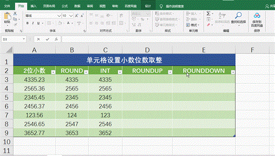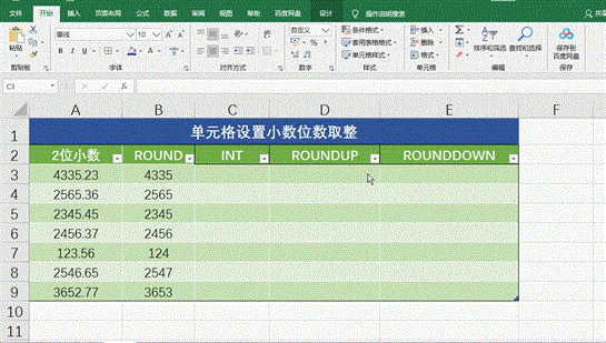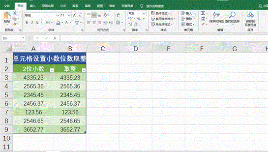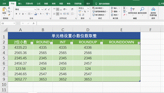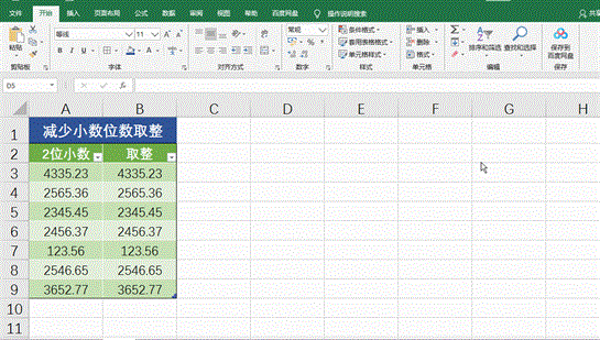 选中需要取整的单元格区域–【开始】选项卡–【数字】功能组中可以直接减少或增加小数位数,自动按四舍五入显示的。如下图所示:
