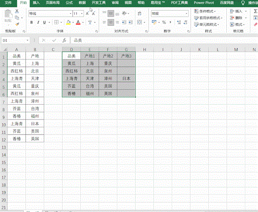 选中品类列,单击[转换]——逆透视其他列,然后将属性列删除。