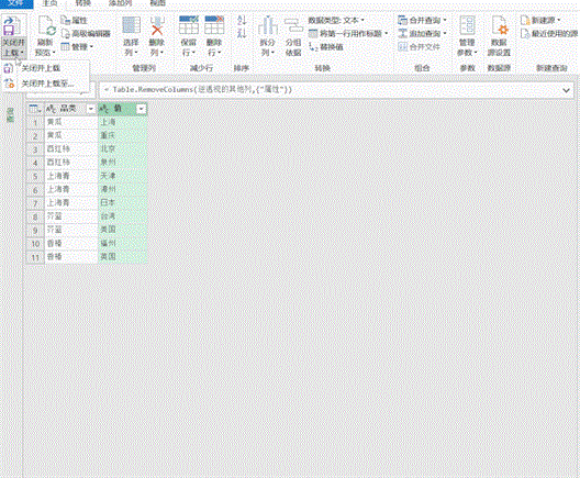 单击:主页——关闭并上载。如此我们就快速将二维表转为一维表。