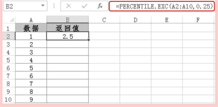 PERCENTILE.EXC函数用于返回区域中数值的第k个百分点的值,其中k为0~1之间的值,不包含0和1。