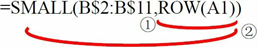 ①ROW(A1)返回值为1,即最小值。当向下复制公式时,返回值依次为“2、3、4……”。