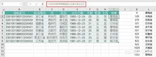 然后我们对A列的身份证号进行提取数字,然后进行查找匹配地区表。