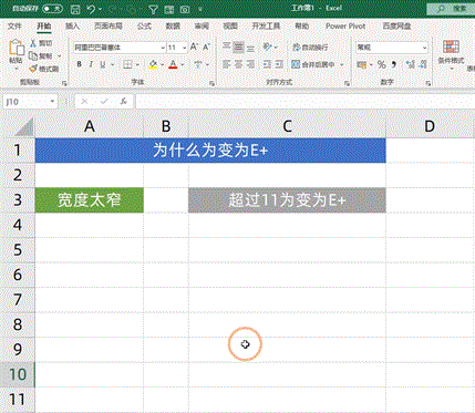 首先我们先来了解下数据为什么会变为E+显示的原因,所谓的E+显示其实就是科学计数法的显示方式。在不做任何更改的情况下,Excel单元格默认的格式是常规格式,它会根据我们输入的数据以及单元格的列宽来自动选择对应的显示方式如果单元格的宽度太窄,当我们输入的数据大于5位Excel就会以科学计数法的方式显示,这个时候我们只需要增大列宽即可,如果单元格的列宽足够宽,当我们输入的数据超过11位,Excel也会采取科学技术法的方式显示。