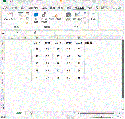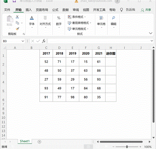 Excel中迷你图制作方法:选择数据,点击插入,选择需要展现的迷你图。