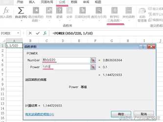 方法二:在电脑上使用excel电子表函数计算,打开excel电子表软件→点击“公式”→点击“数学和三角函数”→拖动光标到“POWER”点击→在出现的方框中上框输入“最后一年数值/前n年期初始数值”→下框输入1/(n-1)。最后这个得数减1,小数点后移两位,加上百分符号,这个百分数就是你要的年均递增率。
