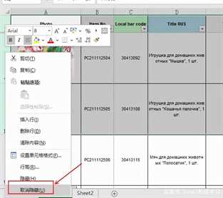 那么首先我们可以拉取第一行到第七行,或者到第七行以下,然后鼠标放在左侧行序号上,右击,点击“取消隐藏”。