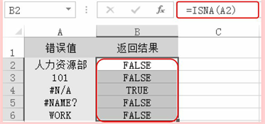 按“Enter”键即可检验出A2单元格中的数据是否为错误值“#N/A”,如果是则返回TRUE,否则返回FALSE。