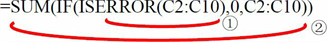 =SUM(IF(ISERROR(C2:C10),0,C2:C10))