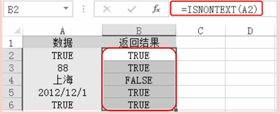 ISNONTEXT函数用于判断指定数据是否为非文本。