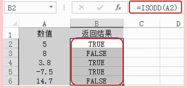最佳答案ISODD函数用于判断指定值是否为奇数。函数语法ISODD(number)参数解释number:表示待检验的数值。如果number不是整数,则截尾取整。如果参数number不是数值型,函数ISODD返回错误值“#VALUE!”。实例1 判断指定数值是否为奇数➊ 在B2单元格的公式编辑栏中输入公式:=......
