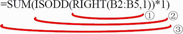 =SUM(ISODD(RIGHT(B2:B5,1))*1)