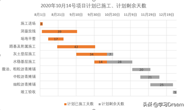 最佳答案Excel中使用条形图可以自动生成,每天打开会自动更新哟。操作步骤:1、原始数据信息:原始数据设计包括项目名称、开始日期、结束日期、计划持续天数、计划已施工天数、计划剩余天数;开始日期位于B3:B12,结束日期位于C3:B12;其中:计划持续天数“=结束日期-开始日期+1”;其中:计划已施工天数“=......