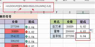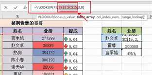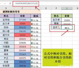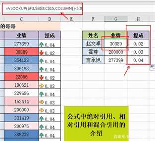 而接下来作者君还要快速匹配这名同志的提成,同样是直接拉动填充公式,可想而知,不管是相对引用还是绝对引用,都会使结果出错。