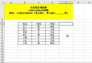 用法:=CONCATENATE(单元格1,单元格2,,,,,,等)