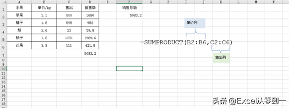 需要注意的是:使用sumproduct函数,参数中的元素数必须相等,比如第一个区域选择了6个单元格,第二个区域也必须选择6个单元格,否则会返回错误值