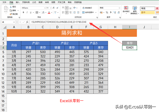 隔列求和原理也是一样的,现在【库存】都在奇数列,所以需要使用COLUMN获取对应的列号