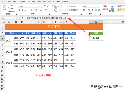 这个函数本质是一个SUMPRODUCT函数的单条件计数,库存的数据都在奇数行,所以我们用ROW函数获取数据的行号,然后再用MOD求得奇数行