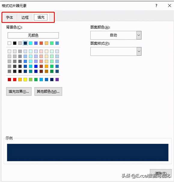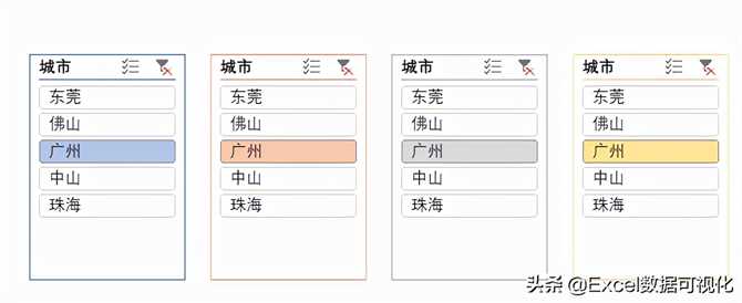 主要进行填充设置,这里建议字体使用【灰色】,填充底色使用与原来①整个切片器颜色相近的底色,以便弱化视觉效果。