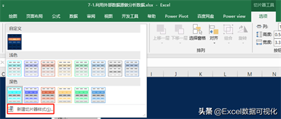 选择原有的【切片器】,在【切片器工具】【切片器样式】选择刚刚自定义的【Excel数据可视化样式】,即可。