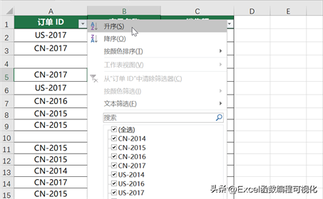 有数据的内容的行将会排序到一起,形成一个整体,便于后期的数据分析处理。