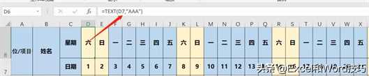 在单元格中输入公式=TEXT(D7,”AAA”),向右填充即可。