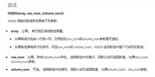 index函数是返回引用函数,根据指定的行列参数,返回相应位置的数据,比如=index(A1:B2,1,2),即表示返回引用A1:B2区域中第1行第2列,结果就是B1单元格的数据内容。