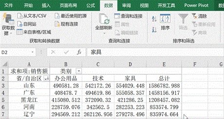 我们知道,在数据透视表中是无法实现筛选功能的,如下图中,在透视表状态下,数据视图中的筛选按钮处于灰色状态,无法进行筛选。