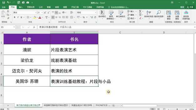选中B5单元格。在开始选项卡。对齐方式功能组中单击自动换行按钮。这样B5单元格中的内容就会分成两行在B5单元格内显示。