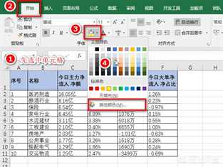 这个是最常用的方法。首先选中单元格,点击“开始”菜单下的油漆桶工具,接着选择好颜色即可。
