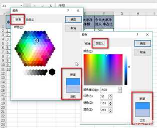 如果觉得这里的颜色不合适,可以点击“其他颜色”,选择一种标准色或自定义颜色,这个界面右下角可以看到所选颜色的深浅。