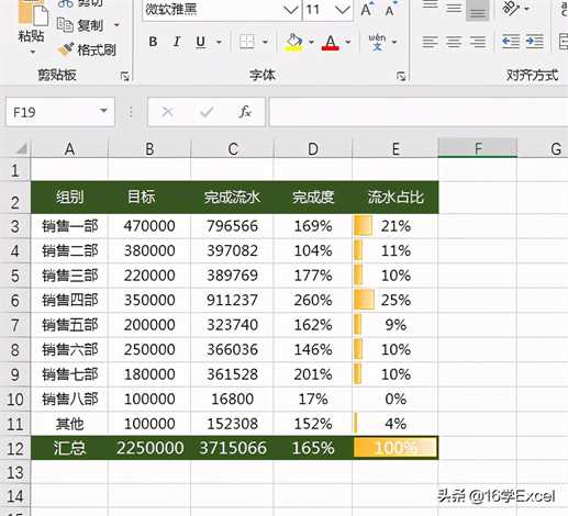3.用数据条,色阶和图标集来直观显示数据:流水占比多少