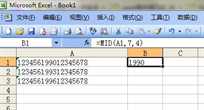 如上图,我们有一个18位的身份证号码,现在我们要取这个身份证号码的出生年,首先我们要知道从第几位开始取以及取几位数,比如身份证号的出生年份是从左数第7位开始,我们要取4位数,如:1990。