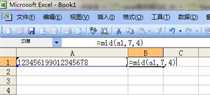这个函数的前半段不用解释了,我们就说一说括号里面的内容吧,如图所示,首先a1表示被取数的单元格,“7”代表从单元格数字的第7位开始取数,“4”代表取4位数。