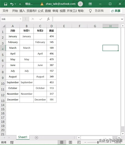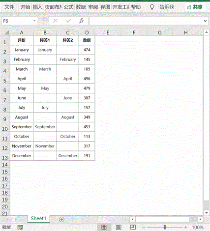 01 首先将月份间隔拆分为两列,标签1,标签2。