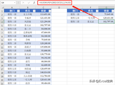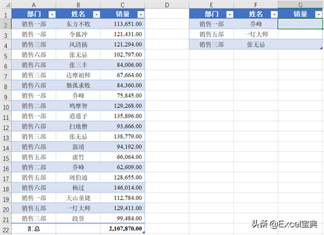 因此,需要同时满足“部门”、“姓名”这两个条件,才能返回准确值。