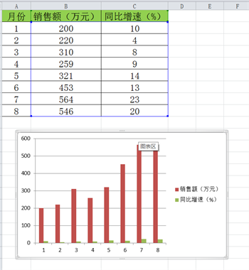 利用双坐标轴,将同比增速设置在次坐标轴,则图表显示更直观。