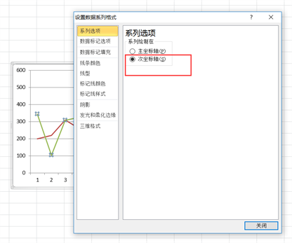在弹出的对话框中,选择次坐标轴。