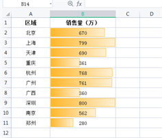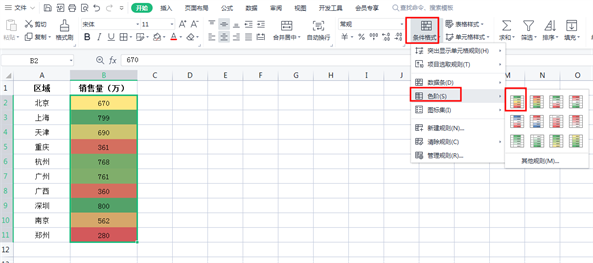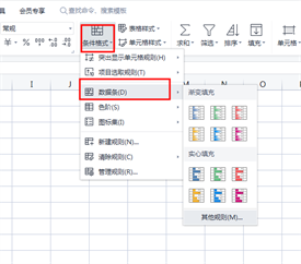 如果想将数据通过数据条来直观展示,同样可以通过条件格式中的数据条来实现。