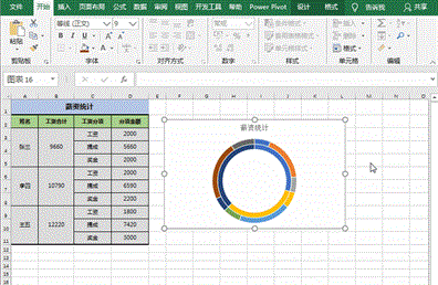 选择第四列的表格数据,复制;选择内层圆环,Ctrl+V粘贴,则在已绘制的圆环外新增了外层的分项数据圆环;