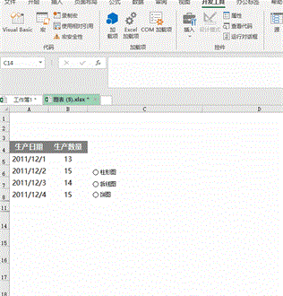 最佳答案 一、数据准备拿到如下数据,大部分同学的做法是分别制作柱形图,折线图,饼图以作分析。这样看起来比较冗杂,普通。生产日期生产数量2011/12/1132011/12/2152011/12/3142011/12/415 1.插入单选控件。(开发工具——插入——第一行最后一个)&nbs......